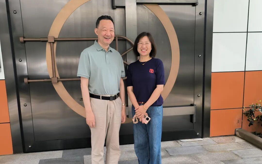伯豪生物董事长肖华胜博士和原能集团副总裁邱洁霞女士在原能细胞库前合影