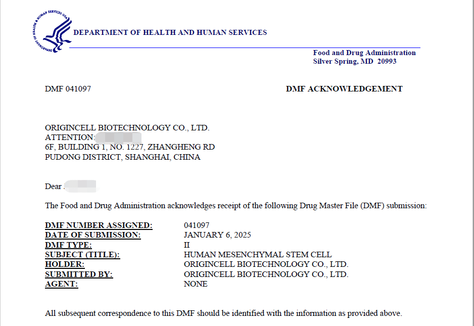 原能集团旗下原天生物原料类产品“人源脐带间充质干细胞”完成美国FDA DMF备案